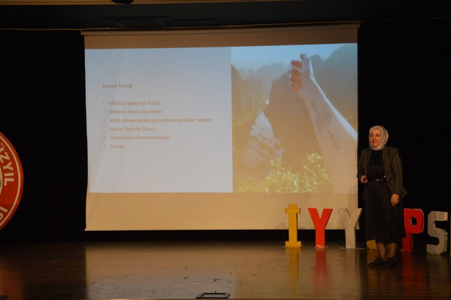 Etkinliğin ilk günü, 20 Mayıs Salı günü, “Mitik Dünyanın Beden Yoluyla Taşınan İzleri” başlıklı sunumuyla Dr. Gönül Yonar katılımcılarla buluştu. Sunumda, mitolojik anlatıların psikolojiyle olan ilişkisi tartışıldı. Bedenin tarih boyunca taşıdığı anlamlar, özellikle dövmeler üzerinden analiz edilerek kültürel ve bireysel belleğin beden üzerindeki izleri fenomenolojik bir yaklaşımla ele alındı. Yonar, bedenin yalnızca fiziksel değil, aynı zamanda anlatısal bir yüzey olduğuna dikkat çekti.