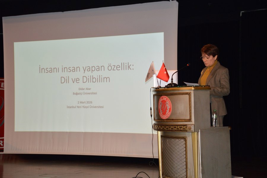 İstanbul Yeni Yüzyıl Üniversitesi Tıp Fakültesi Fizyoloji Anabilim Dalı tarafından düzenlenen “Tıp Fakültesi Konferansları” kapsamında “İnsanı İnsan Yapan Özellik: Dil ve Dil Bilim” başlıklı konferans gerçekleştirildi. Alev Ofluoğlu Konferans Salonu’nda düzenlenen etkinliğe Rektör Yardımcısı Prof. Dr. Ayşegül Topal Sarıkaya, Rektör Yardımcısı Prof. Dr. Emir Tan, dekanlar, akademisyenler ve öğrenciler katıldı.