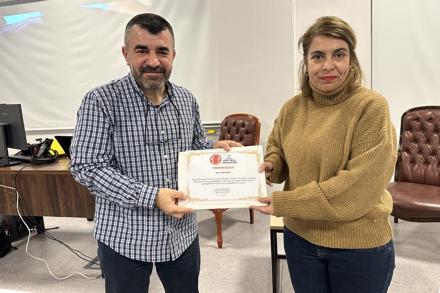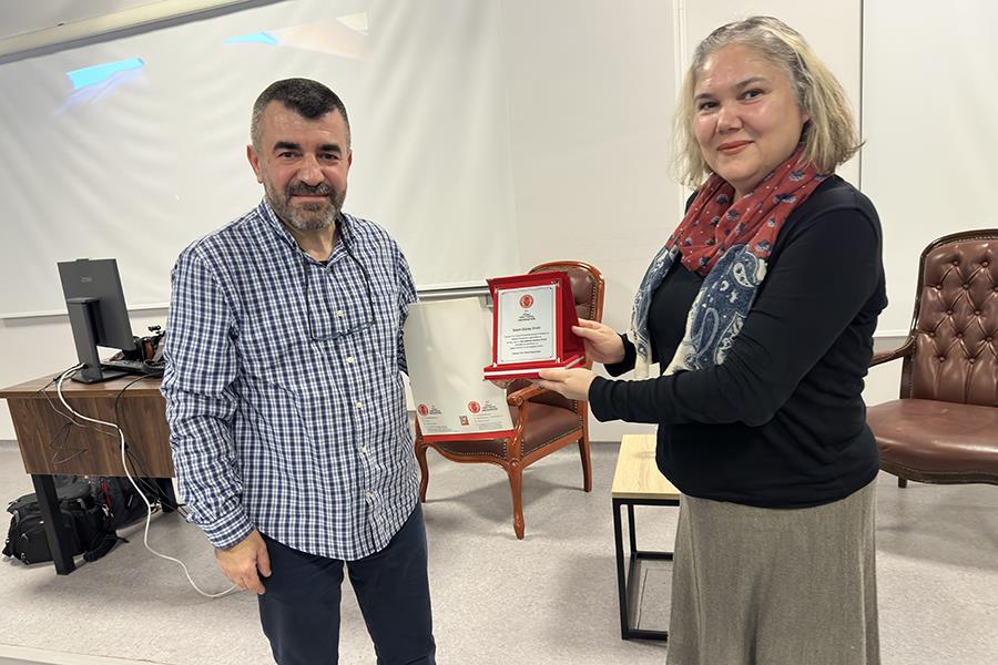 Panelin sonunda, Meslek Yüksekokulu Radyo ve Televizyon Programcılığı Program Başkanı Öğr. Gör. Semra Tüplek, Güray Ervin’e teşekkür belgesini takdim etti. Etkinlik, İletişim Fakültesi Dekanı Prof. Dr. Serra İnci Çelebi’nin Güray Ervin’e teşekkür plaketi sunmasıyla sona erdi.
